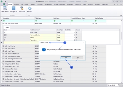 - Click on No to ignore the request and to leave the code in the Call Error Code list.