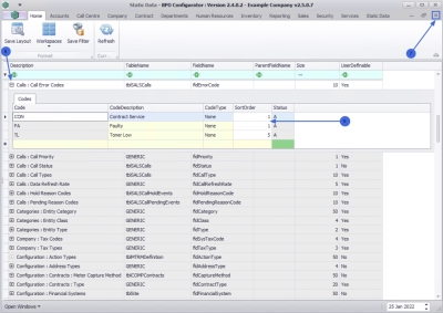 - The new call error code will be saved and a new row will be added to the Codes data grid.