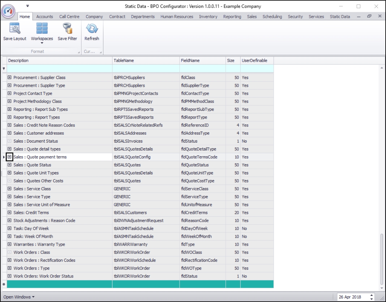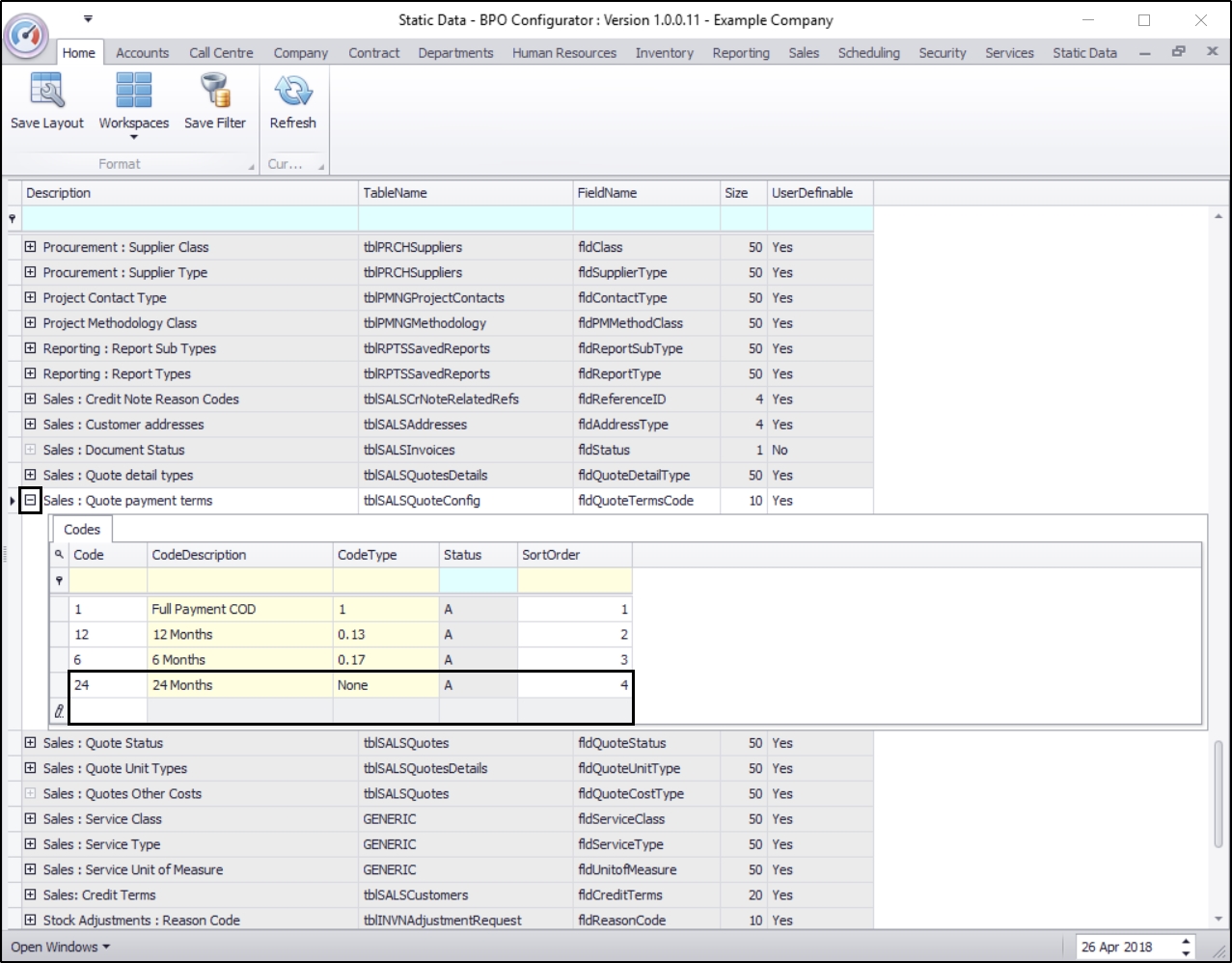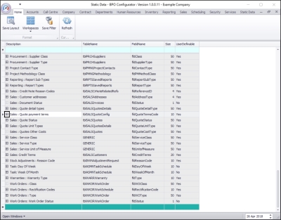 Ribbon Access:   Configurator   >   Static Data> Static Data