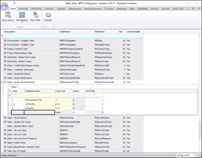 • The Code Type, Status and Sort Order columns will now be populated.