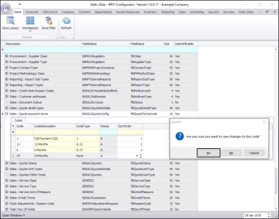 • Note: The sort order is the order in which this will appear in the sales quote payment code drop-down list in BPO2. If each sales quote payment code has the number 1, then the drop-down list will usually default to an alphabetical order in BPO2. If, as in the next image, it is numbered 4, then it will appear 4th in the drop-down list in BPO.