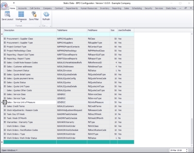 | Ribbon Access: Configurator > Static Data> Static Data |