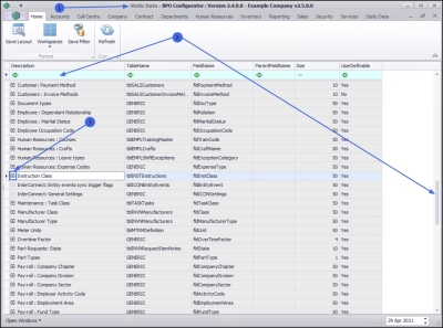 | Ribbon Access: Configurator > Static Data > Static Data |