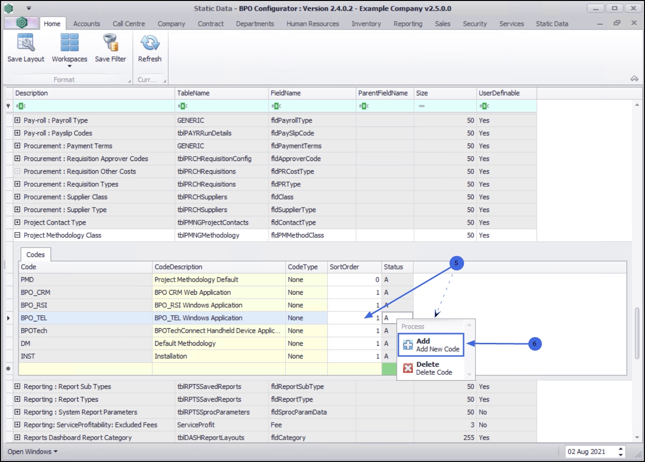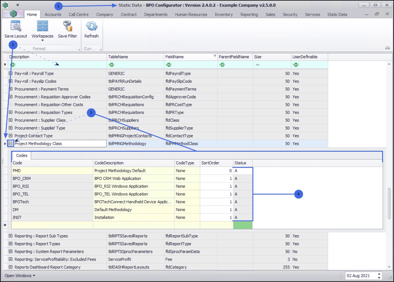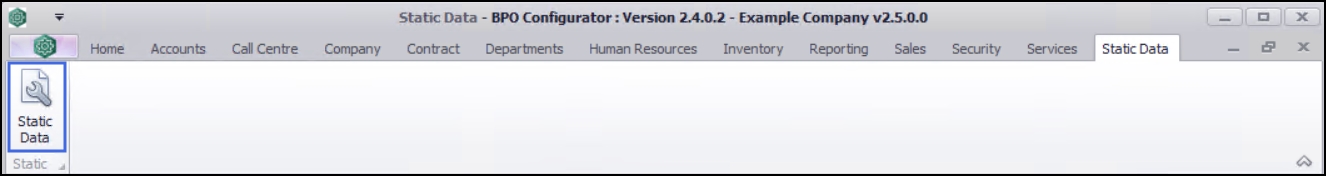 | Ribbon Access: Configurator > Static Data > Static Data |