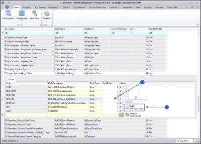 - Right click anywhere in a row of the Codes data grid.