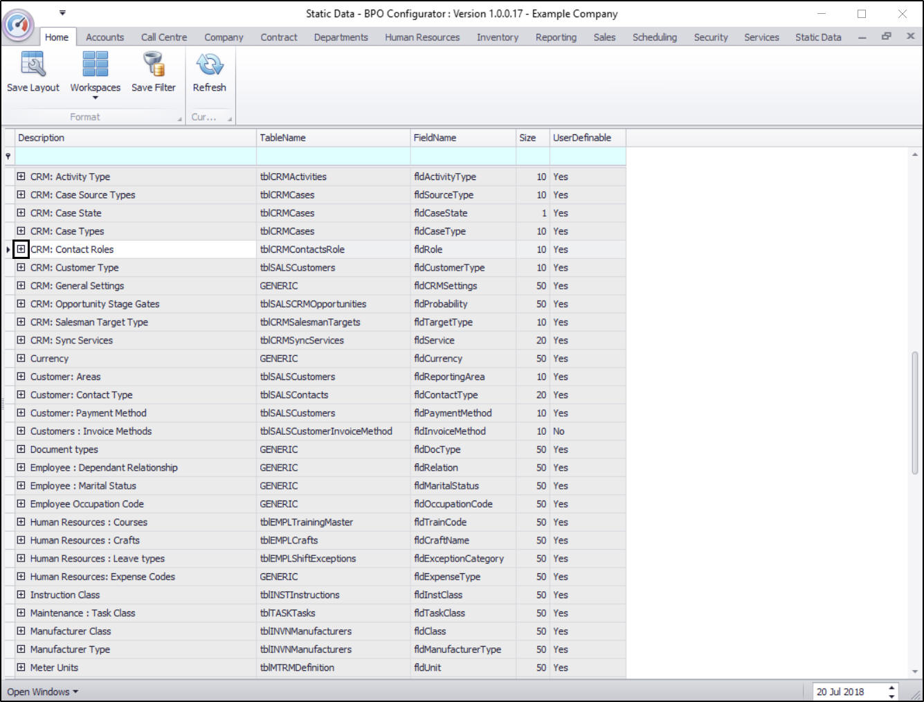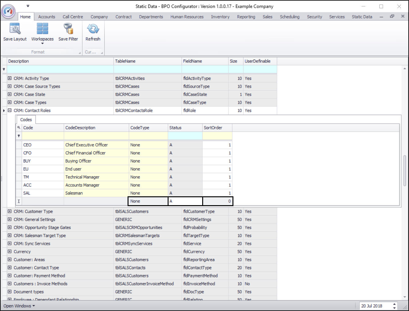 • The CRM: Contact Roles Codes frame will be expanded.
