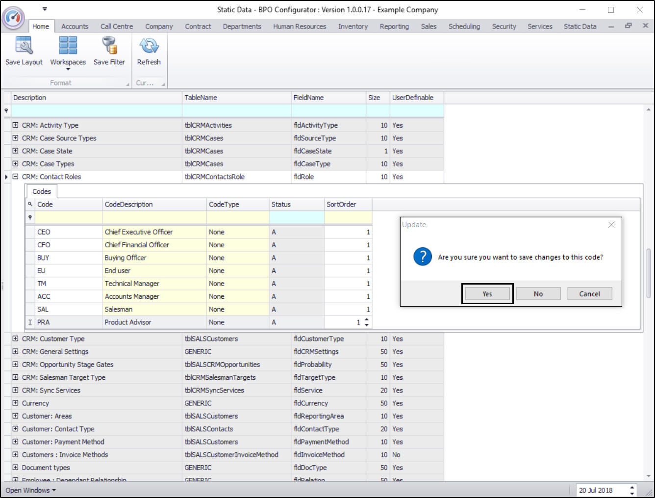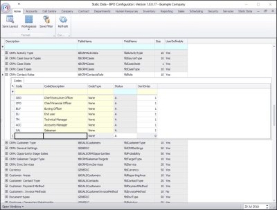 • Here you can view a list of CRM: Contact Roles codes currently on the system.