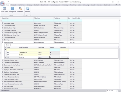 • Note: The sort order is the order in which this will appear in the Customer: Area code drop-down list in BPO. If each Customer: Area code has the number 1, then the drop-down list will usually default to an alphabetical order in BPO. If, for example, it is numbered 2, then it will appear 2nd in the drop-down list in BPO.