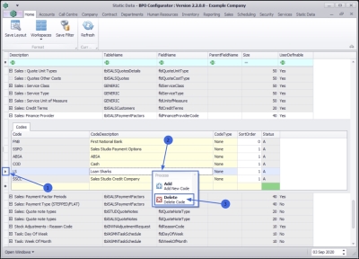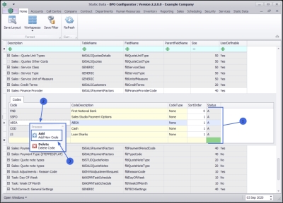 | Ribbon Access: Configurator > Static Data > Static Data |
