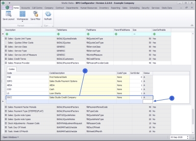 - In this example, there are currently 5 Finance Provider codes set up on the system.