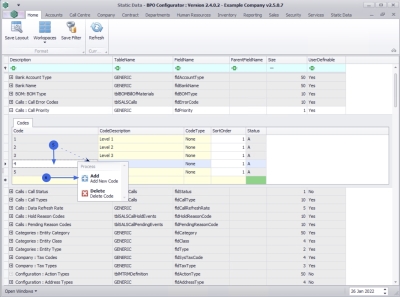 - An available row will be added in the Codes data grid for adding the new Call Priority Code.