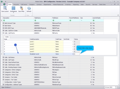 - The call priority code will be saved and a new row will be added to the Codes data grid.