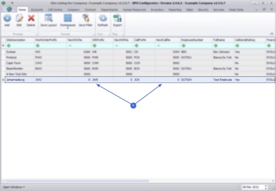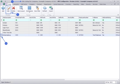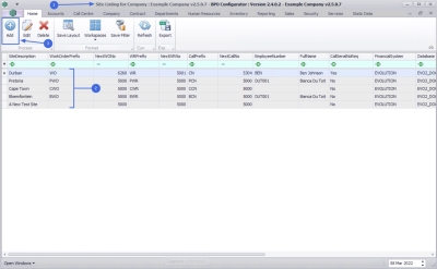 2. For multi sited companies any sites already created will be listed in the data grid.