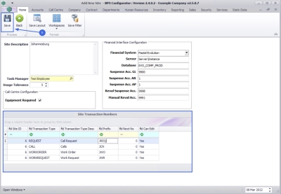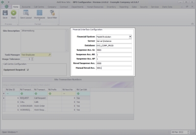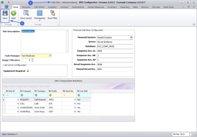2. Make the changes as required to the Site, Call Centre Configuration, Financial Interface Configuration or the Site Transaction numbers as required.