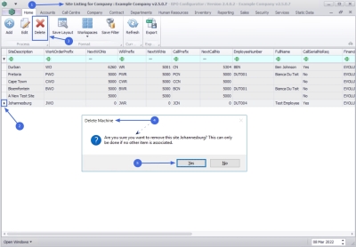 2. Close the screen to return to the Site Listing for Company screen.