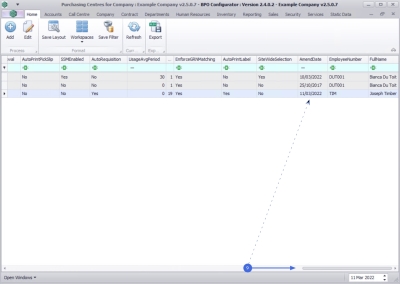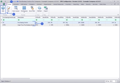 | Ribbon Access: Company > Purchasing Centres |