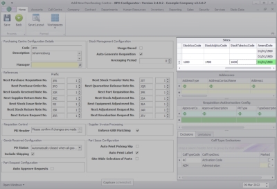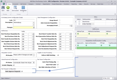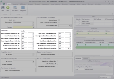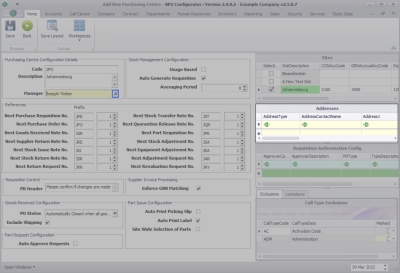 Purchasing Centre Configuration Details