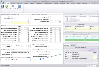 - Ensure that the Exclusions and Limitations for the part request approval has been set.