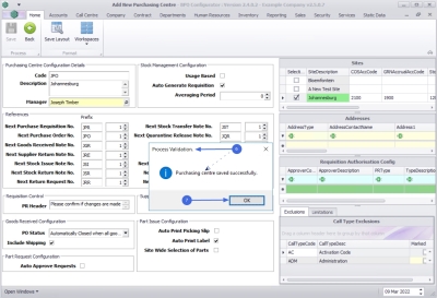 - Purchasing centre saved successfully.