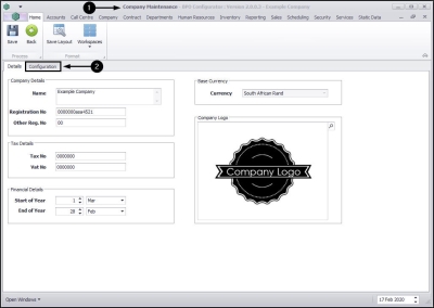 | Ribbon Access: Configurator > Company > Company |