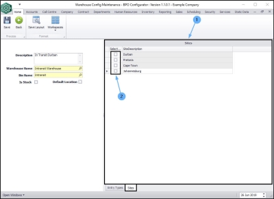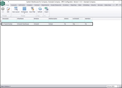 | Ribbon Access: Configurator > Company > System Warehouses |
