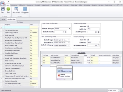 - Right click anywhere in a row of the Tax Rates data grid.