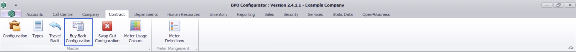 - Ribbon select Contract > Buy Back Configuration.