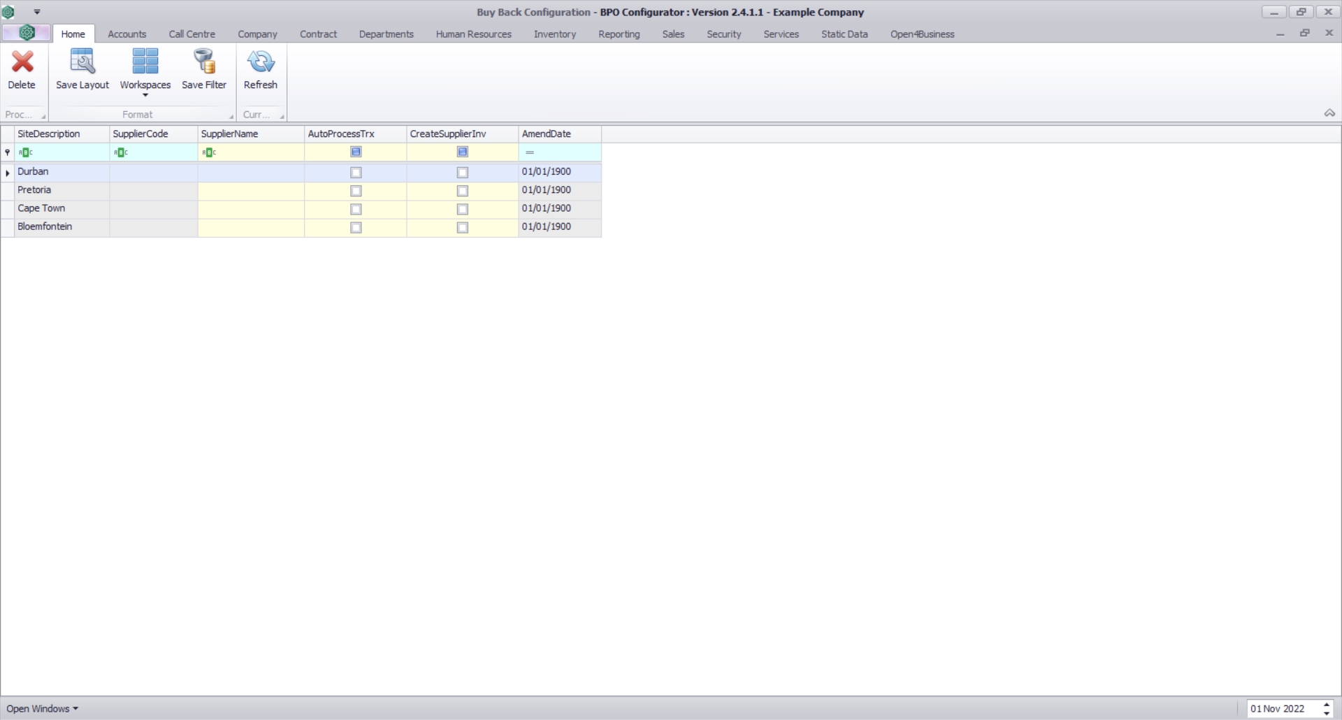 In the Buy Back Configuration, you will select the relevant Buy Back supplier per site, and whether the buy back should be auto processed or not.