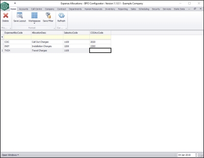 - A new row has been added to the data grid, ready for the next new Expense Allocation code, if required.