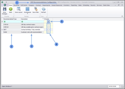 | Ribbon Access: Configurator > Sales > Recommendation Config |
