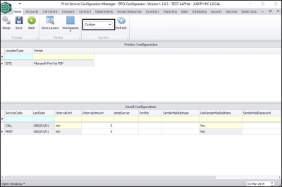 - the Printer Configuration and Email Configuration data grids will now be populated with data.