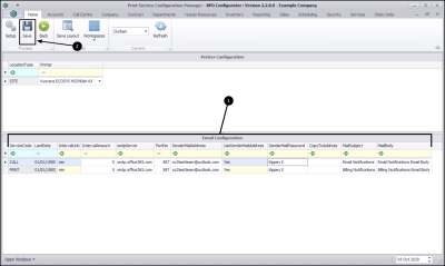 - You will note that there is no data in the Printer Configuration or Email Configuration data grid.