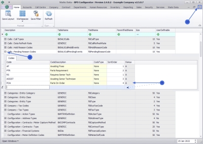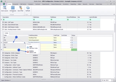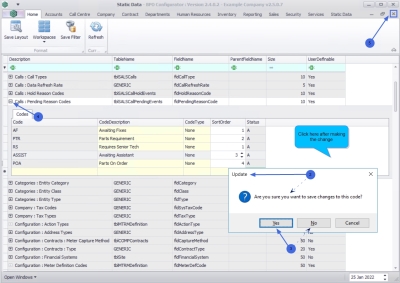 - The call pending reason code will be saved and a new row will be added to the Codes data grid.