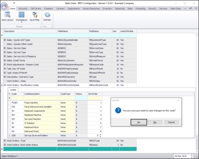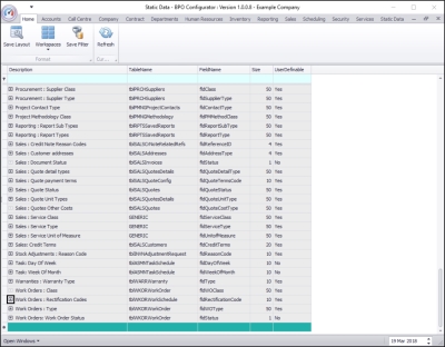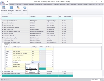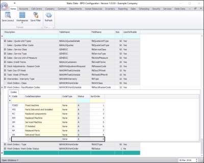 - Here you can view a list of work order rectification codes currently on the system.