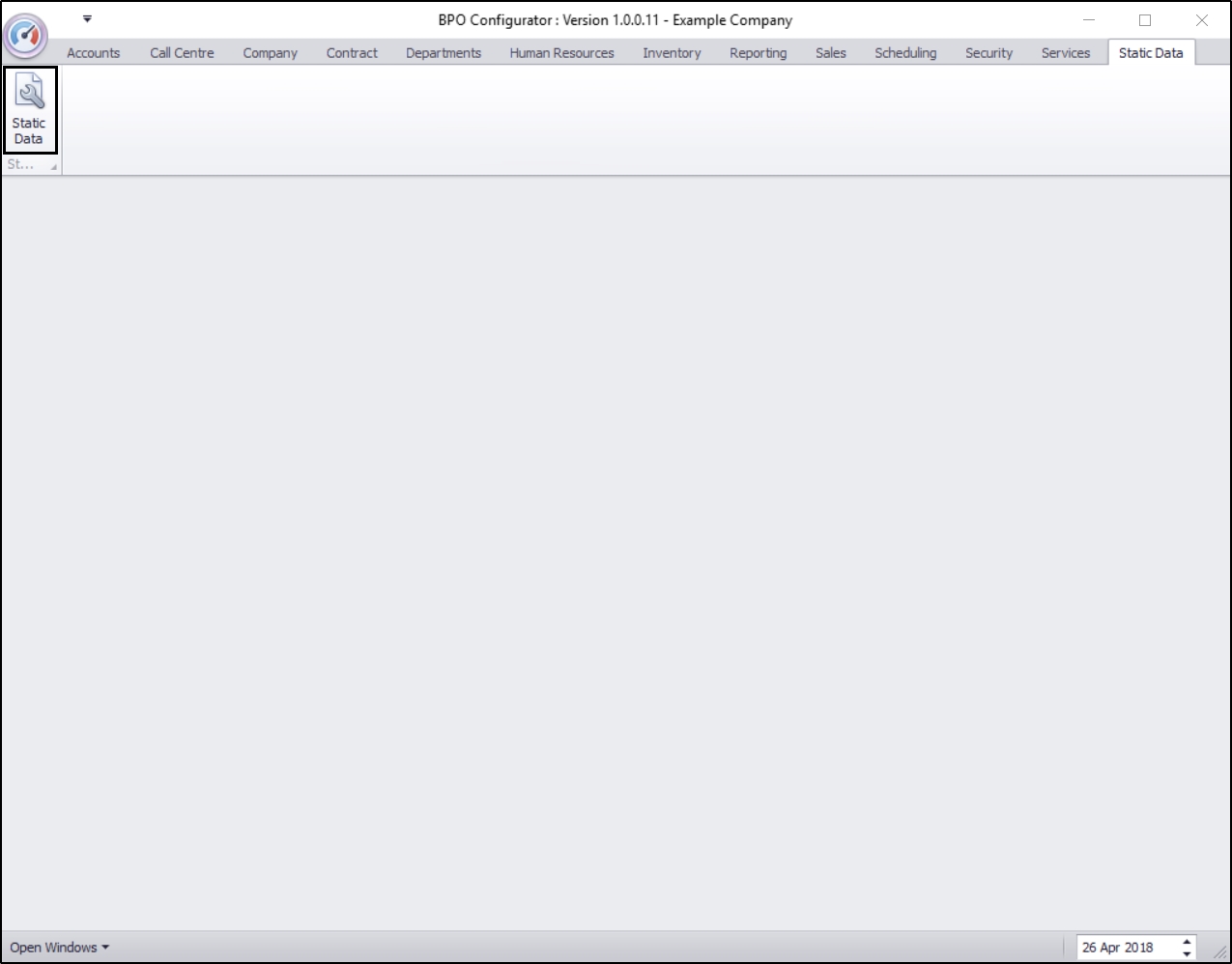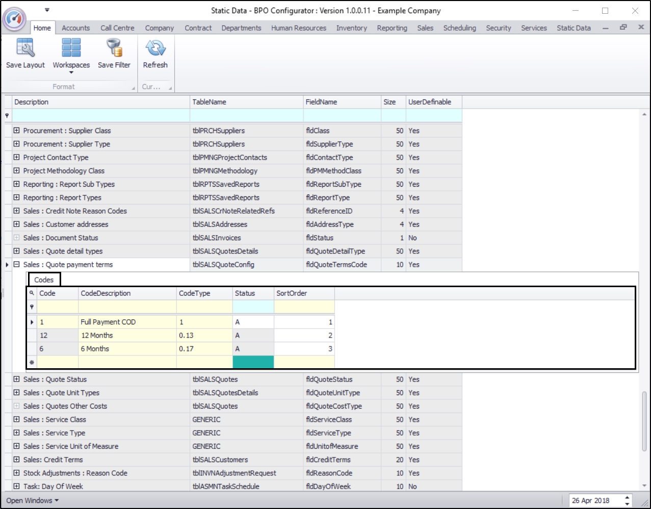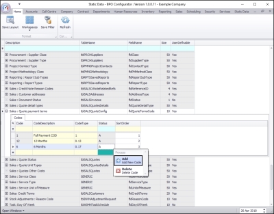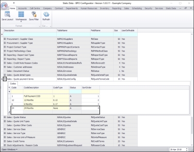 | Ribbon Access: Configurator > Static Data> Static Data |