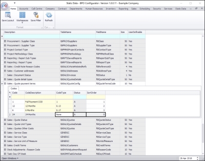 - The Code Type, Status and Sort Order columns will now be populated.