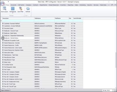 | Ribbon Access: Configurator > Static Data> Static Data |