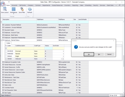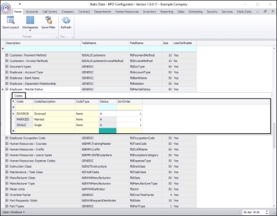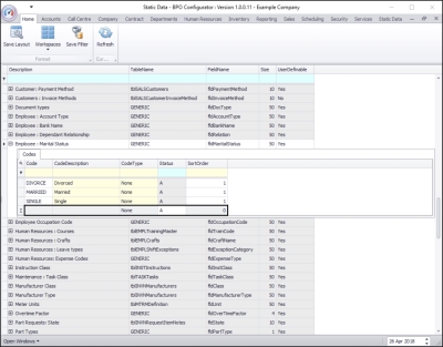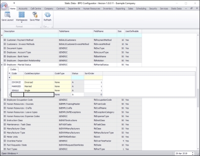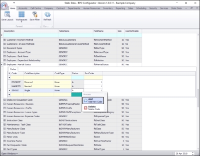 - The new marital status code will be saved and a new row will be added to the Codes data grid.