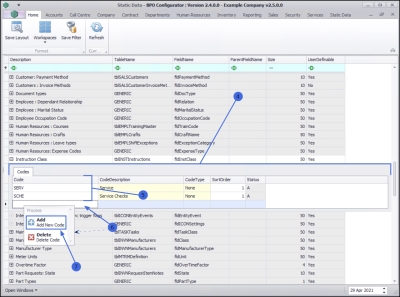 | Ribbon Access: Configurator > Static Data > Static Data |