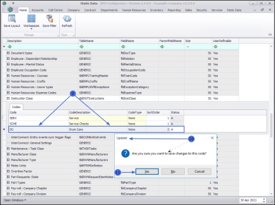 - The final row in the Codes data grid will now be 'activated' and the Code Type, Status and Sort Order columns will be populated.