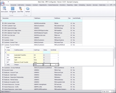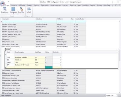 | Ribbon Access: Configurator > Static Data > Static Data |