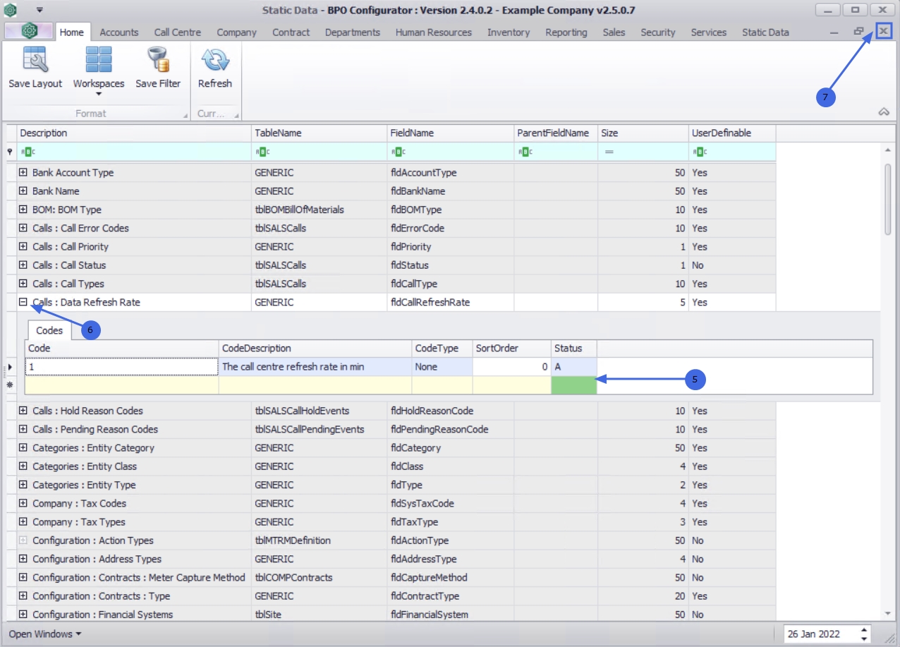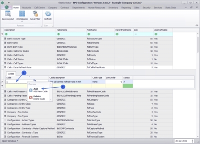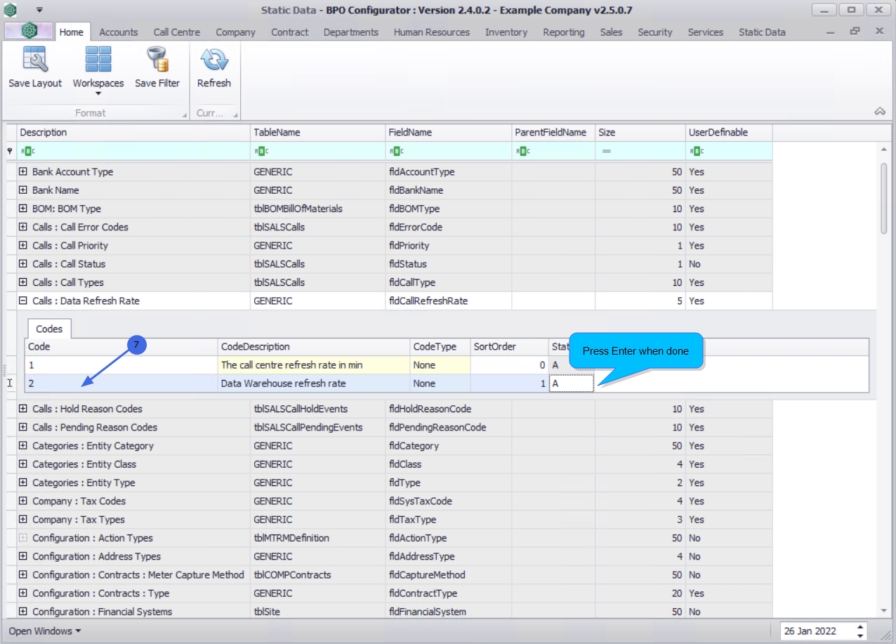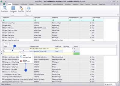 - An available row for adding anew Call Refresh Rate will display in the Codes data grid.
