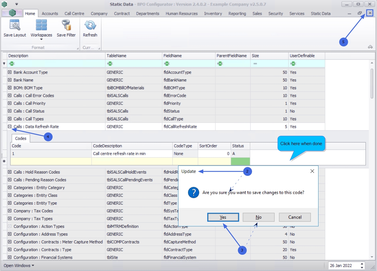 You can make changes to the Code Description, Code Type or the Sort Order to a Data Refresh Rate.