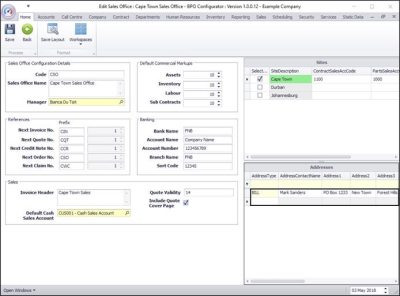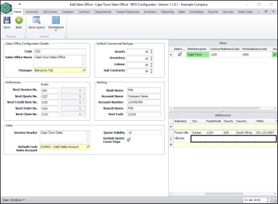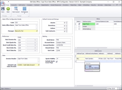 When configuring Sales Office addresses, it is important to note that a Billing address type must be set up, as this address will pull through on the Sales Invoice.