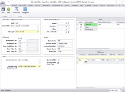 | Ribbon Access: Configurator > Company > Sales Offices |