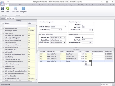 - The new tax rate code will be saved and a new row will be added the Tax Rates data grid.
