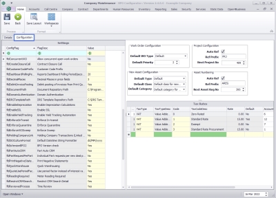 - When you have finished editing the Configuration according to your company requirements, click on Save.