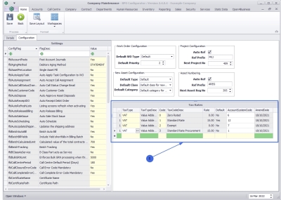 - Tax rates need to be set up so that you can add tax to items, e.g. 14% VAT on stock sold.