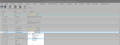 - Click in the Access Level field of the Purchasing Centres row to set the security level.