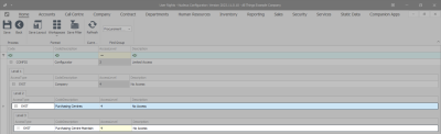 - You will note that currently the Purchasing Centres and Purchasing Centre Maintain Access Levels are set to 4 - No Access.